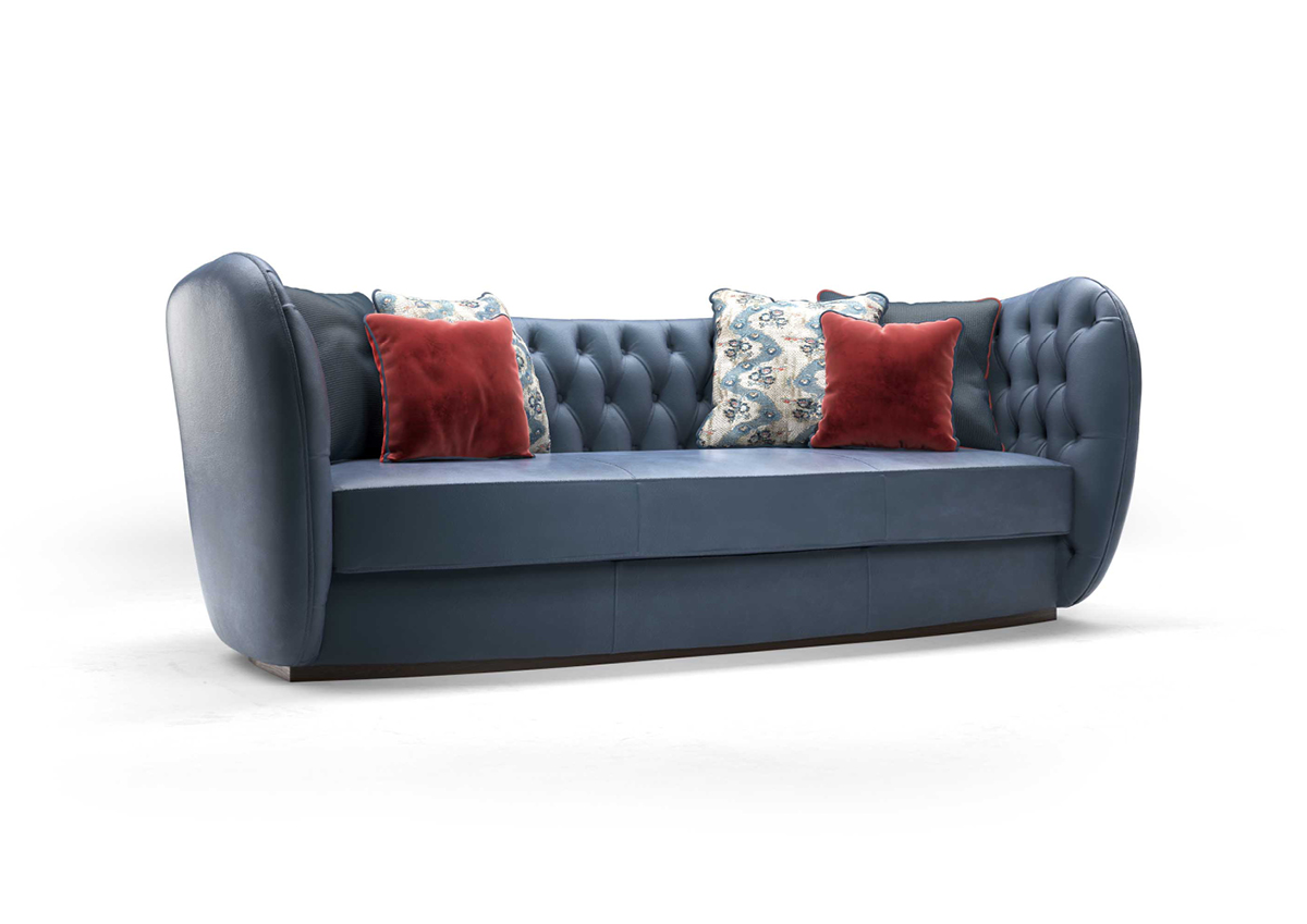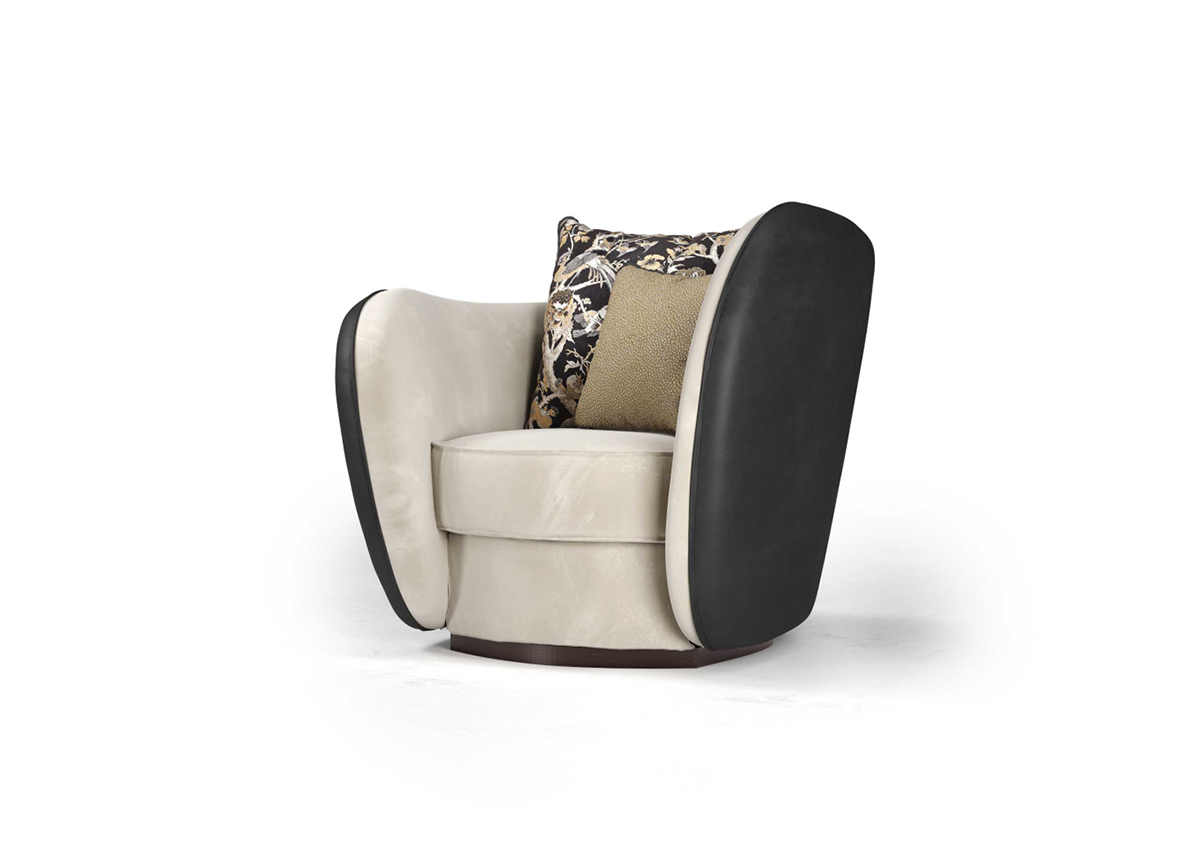 La scocca a tulipano con i fianchi alti e larghi offre una seduta comoda e avvolgente. La lavorazione a capitonné, in contrasto con lo schienale liscio e continuo, crea un affascinante contrasto materico tra interno morbido e accogliente ed esterno rigido e continuo. Il profilo segue una linea ondulatoria continua e ne determina la caratteristica silhouette. Nella poltroncina Vis-à-vis queste linee sono esasperate e creano un gioco intimo ed intrigante.